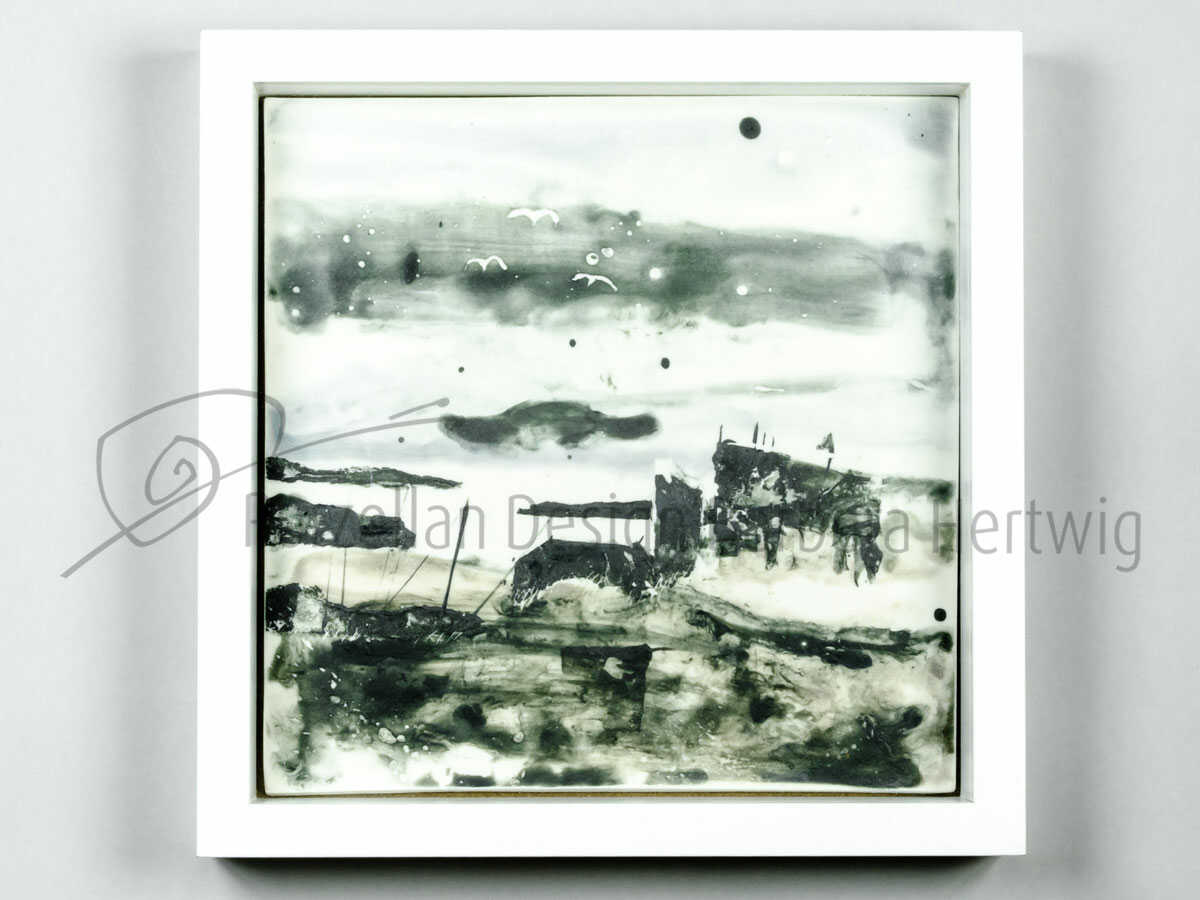- Maße: 23 x 23 cm inkl. Holzrahmen, hinter Glas (Tiefe des Rahmens 4 cm)