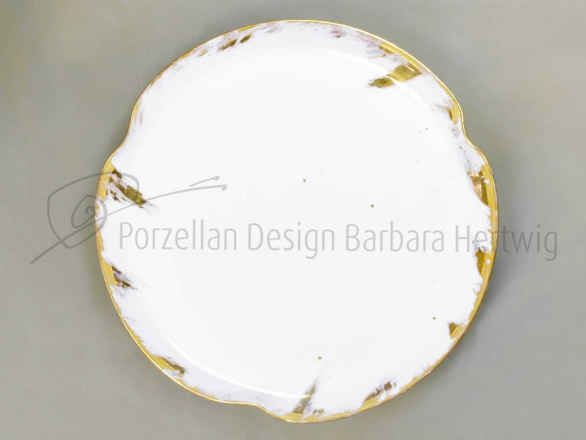 Die Schale ist handgedreht auf der Töpferscheibe und danach individuell verformt von Hand, außen Biskuitporzellan, innen mit transparenter Glasur. Der handbemalte Rand ist mit Echtgoldauflage veredelt. Die Goldauflagen können abweichen vom Produktbild, da jede Schale ein individuell in Handarbeit hergestelltes Unikat ist!